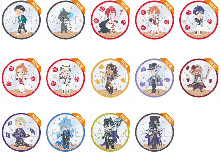ハーツラビュル寮生たちと寮長、グリムの全12柄が2枚ずつ入っています。