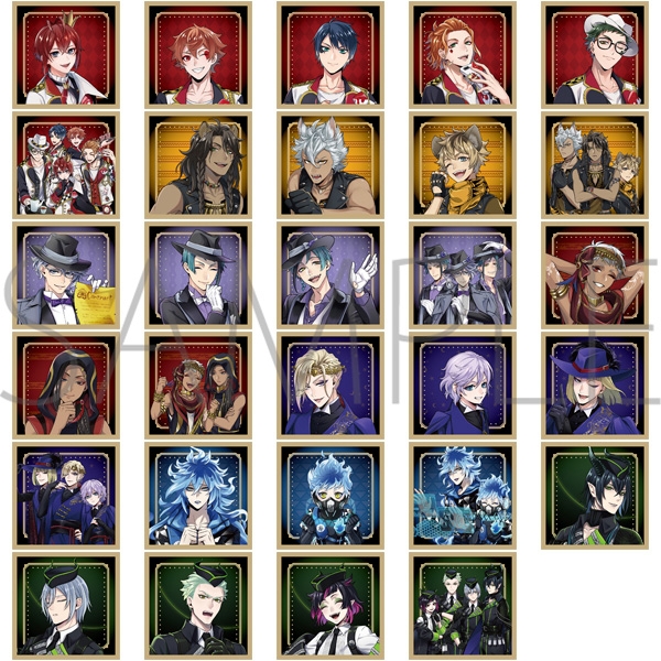 22人の寮生たちの個人イラストと寮ごとに集合したデザインの全29種。