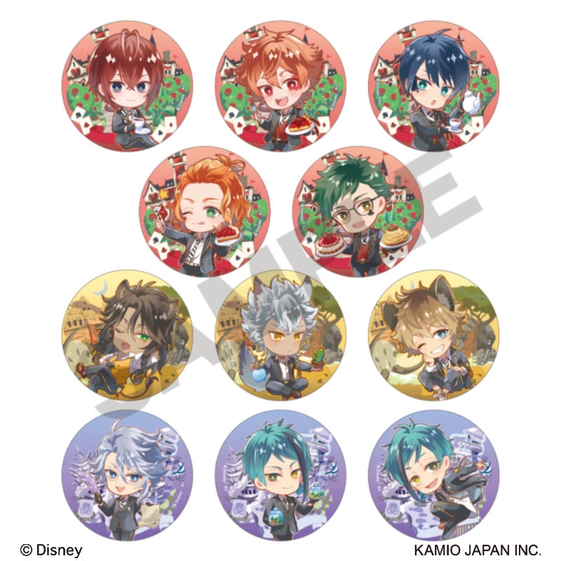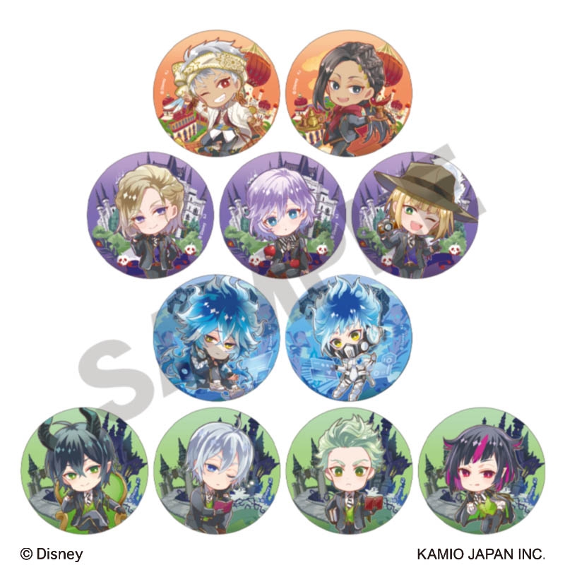 背景に所属寮が描かれたかわいいデフォルメイラストの缶バッジ。
