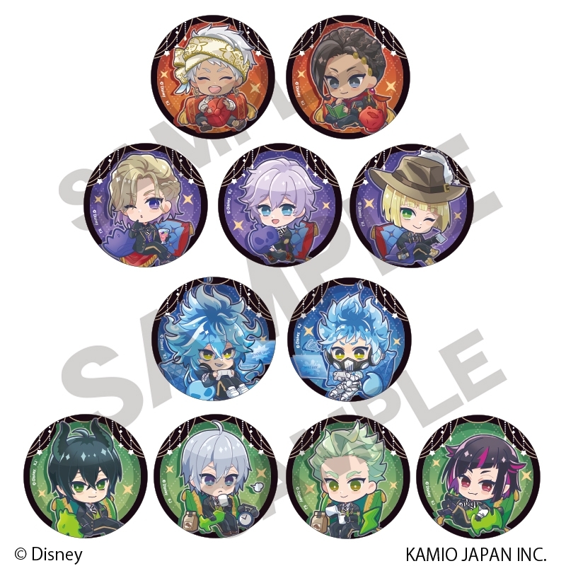『トレーディング缶バッジ クッション』はクッションでくつろぐ寮生たちを描いたデフォルメイラストの缶バッジコレクション。