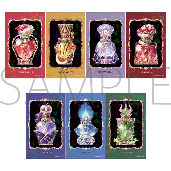 7つの寮をモチーフにした香水瓶が描かれたステッカー。