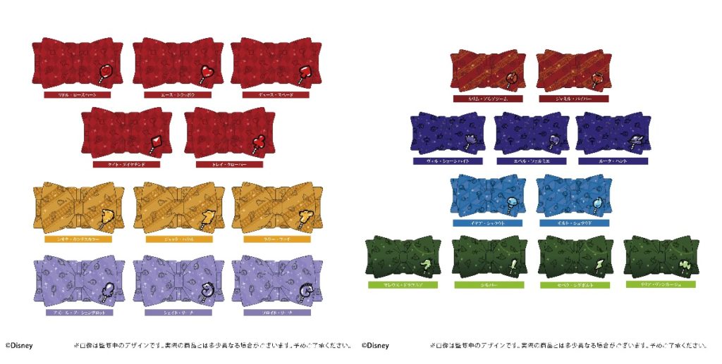 寮カラーのリボンに寮生たちのキャンディや寮章がデザインされています。