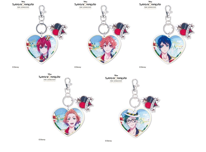 『2連アクリルキーホルダー』はハーツラビュル寮の寮章と寮生がセットになったハート型のデザインと、寮長がデザインされた棺型デザインがラインナップされています。